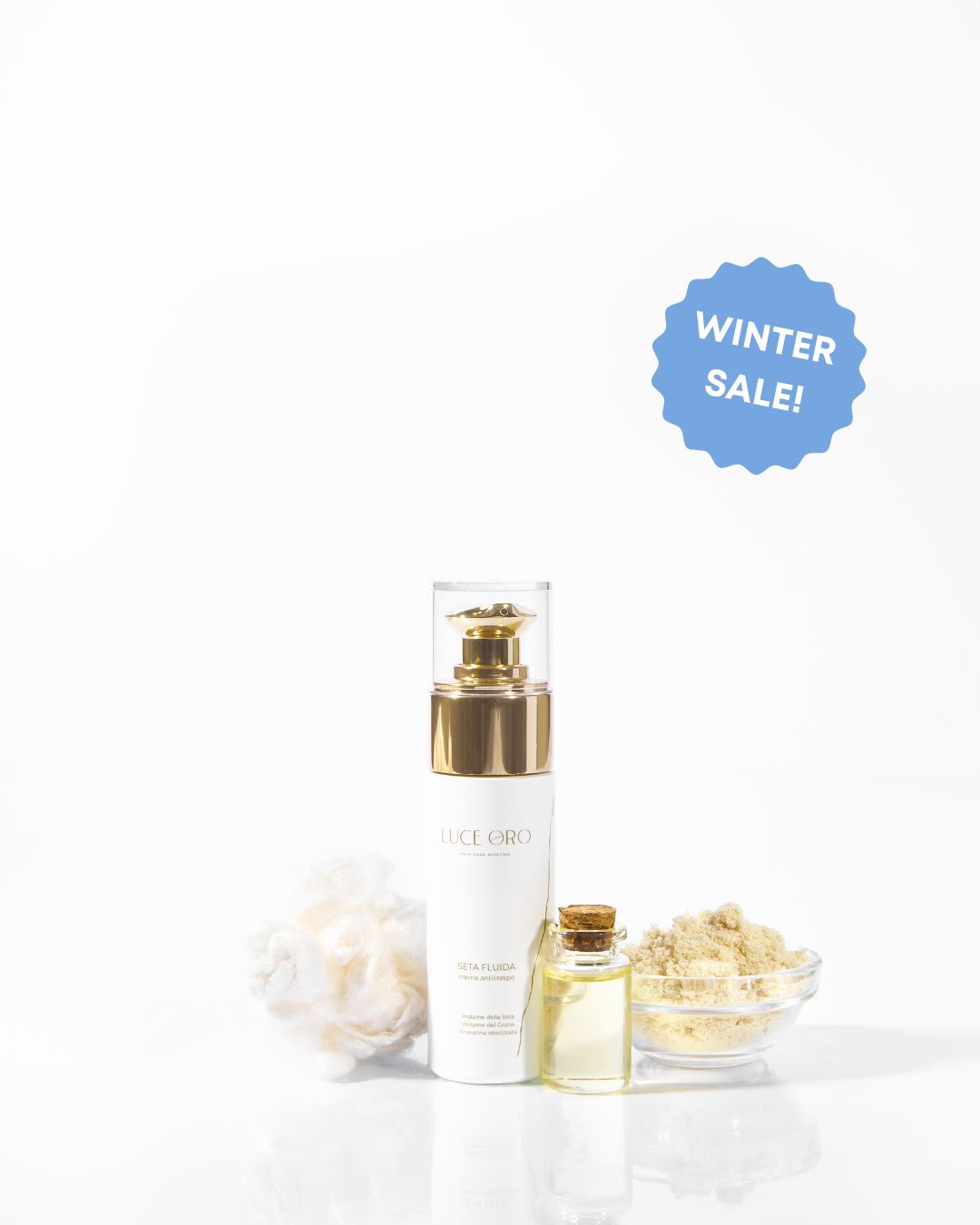 Aqua, Cyclopentasiloxane, Cetrimonium chloride, Myristyl alcohol, Dimethicone, Propylene glycol, Parfum, Argania spinosa kernel oil, Hydrolyzed wheat protein, Hydrolyzed keratin, Hydrolyzed Silk, Cyclohexasiloxane, Benzyl alcool, Lactic acid, Phenoxyethanol, Potassium sorbate, Benzyl salicylate, Butylphenyl methylpropional, Hexy| cinnamal, Citronellol.