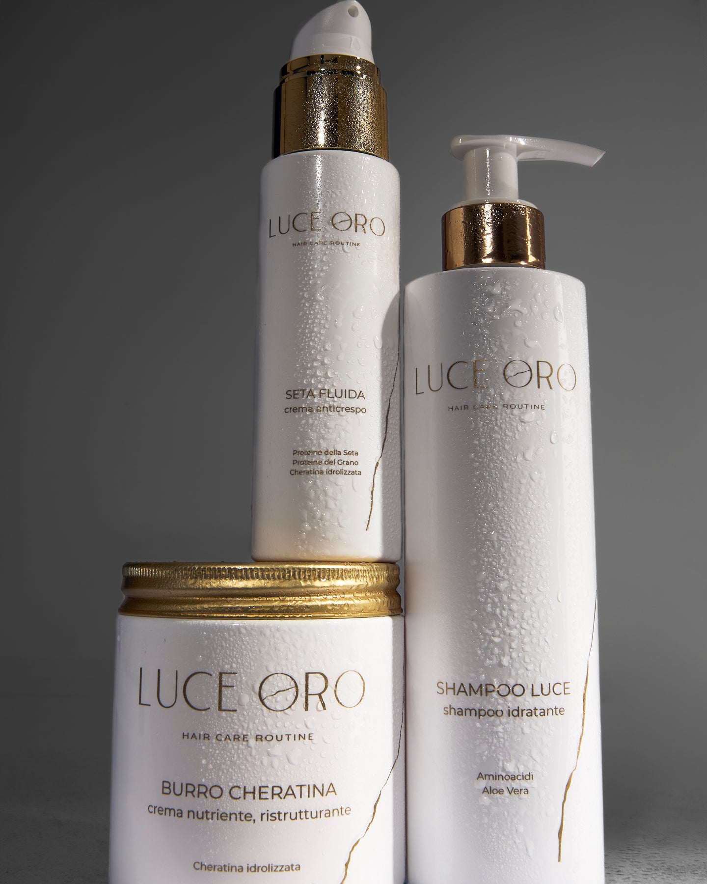 After shampooing, remove excess water from the hair and spray LIGHT TREATMENT on the lengths and ends (6/8 sprays), leave on for 1 minute and apply KERATIN BUTTER.